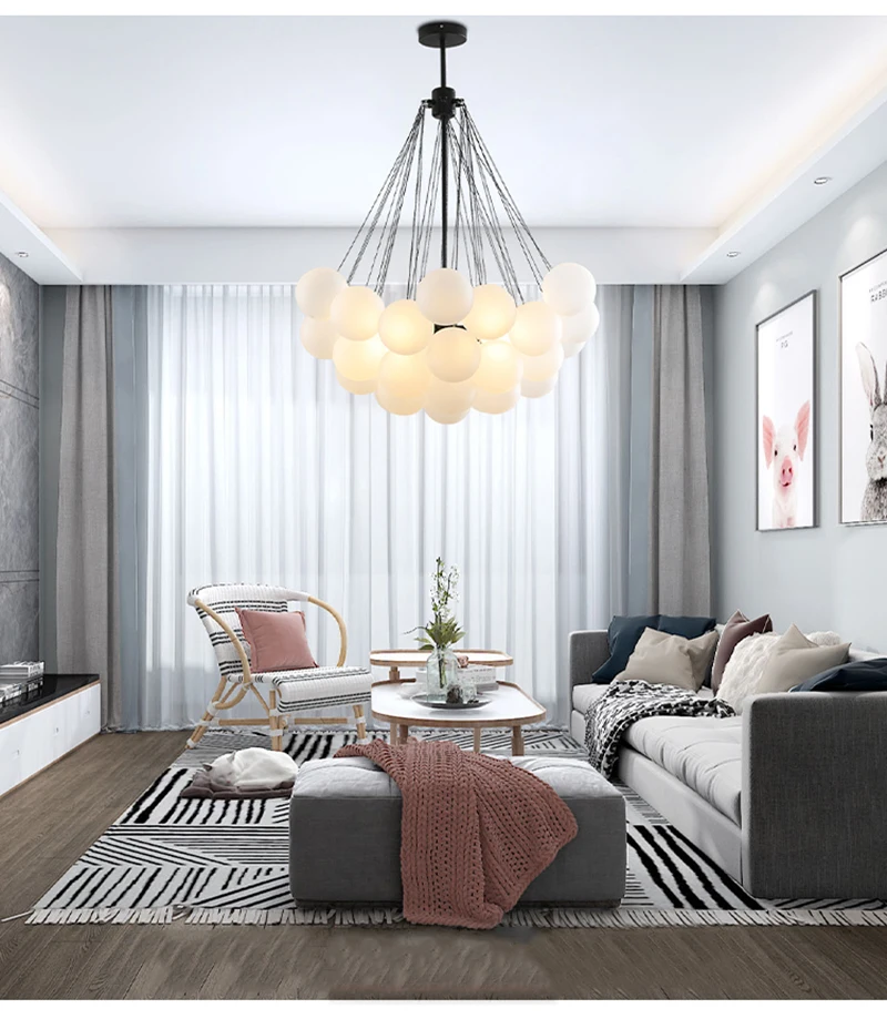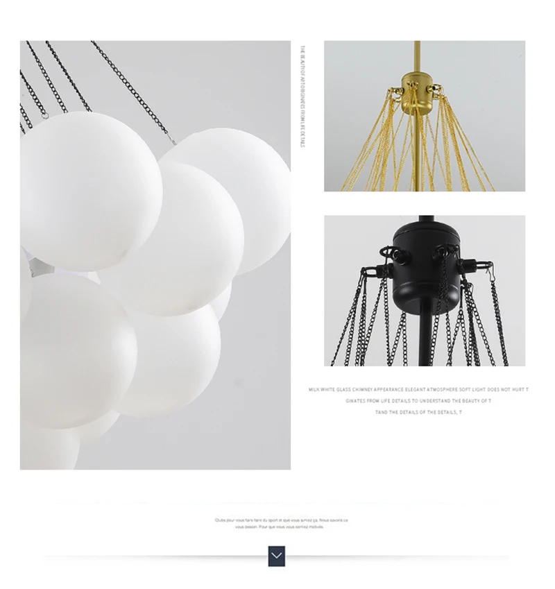 Современные светодиодные подвесные светильники, матовый стеклянный шар, подвесной светильник для ресторана, Европейский дизайнерский золотой черный светодиодный светильник для люстры