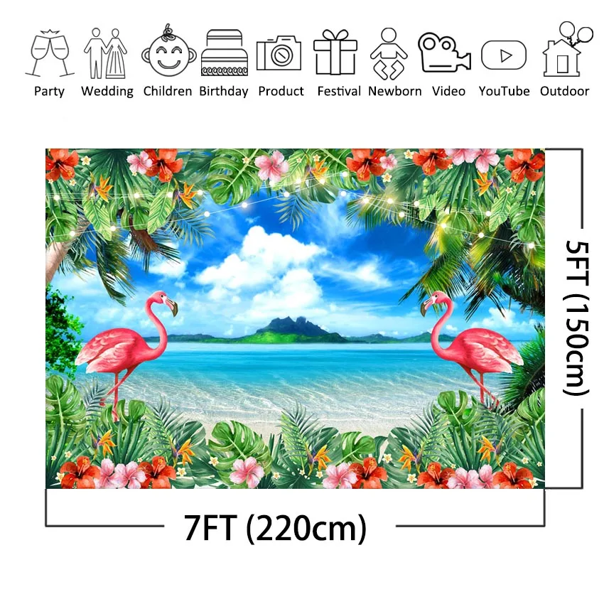 Фон для фотовечерние ъемвечерние с изображением фламинго, Гавайского острова, Алоха, Луау, тропического пляжа, дня рождения, детского праздника