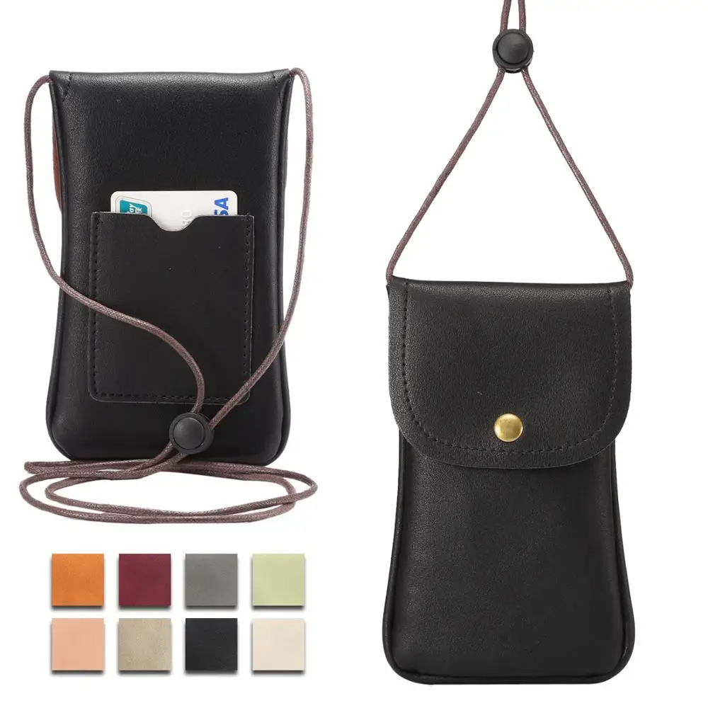 Универсальный кожаный чехол-кошелек с карманом на плечо для сотового телефона