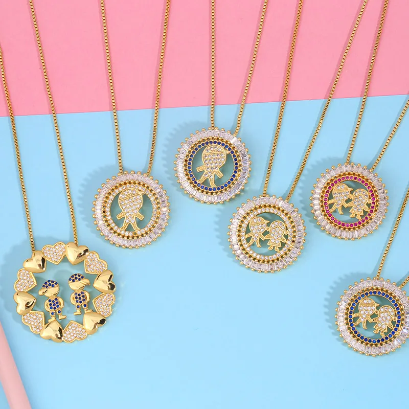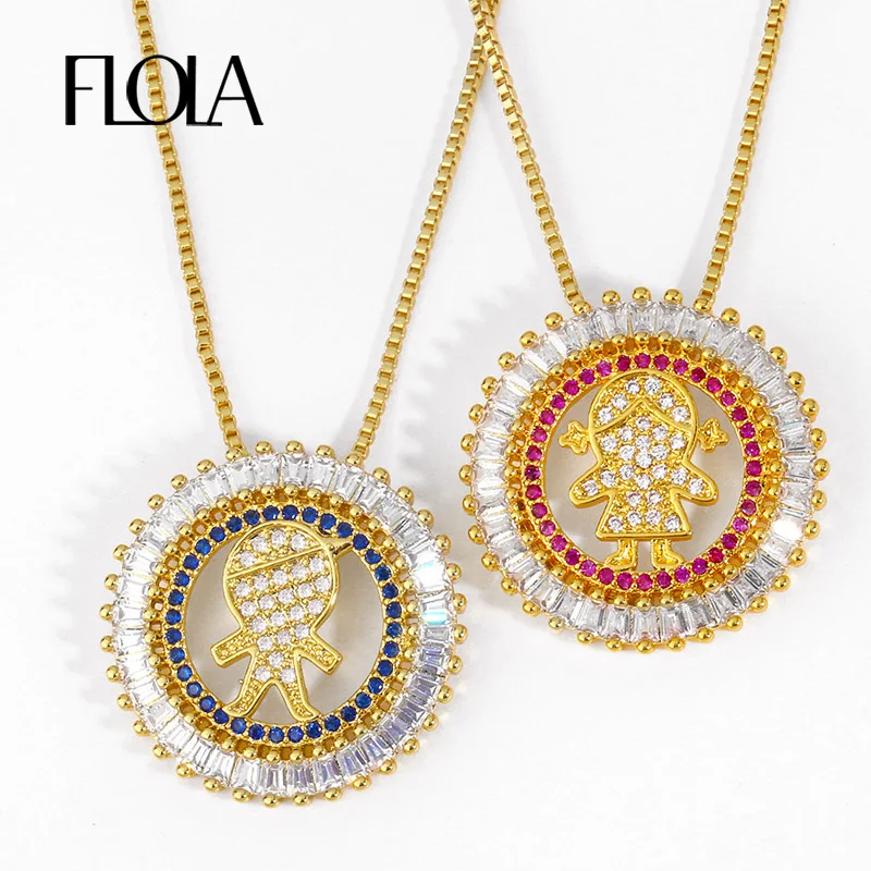 Женская Золотая цепочка FLOLA с кубическим цирконием, подвеска для пары, ожерелье с круглым кристаллом для мальчиков и девочек, Радужное ювелирное изделие, nker02
