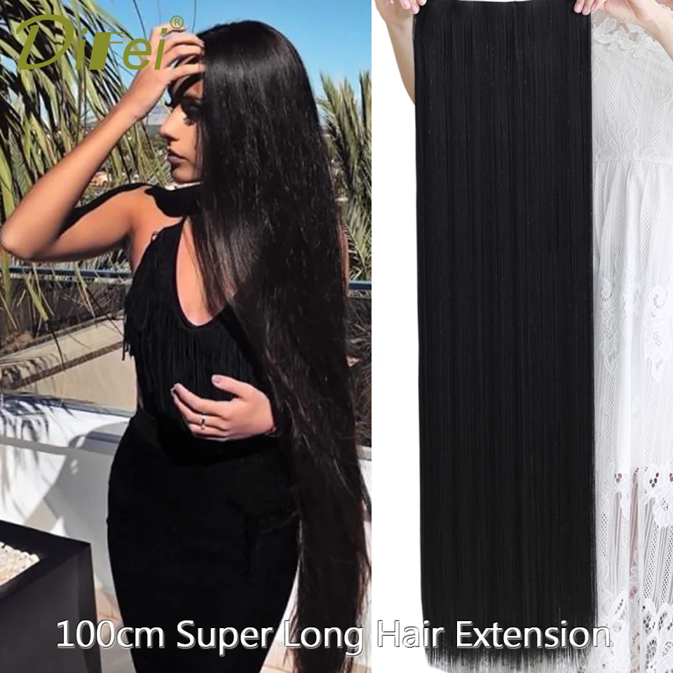 Шиньон DIFEI для женщин, сверхдлинный, прямой, невидимый, натуральный, синтетический, 5 зажимов, 38 дюймов
