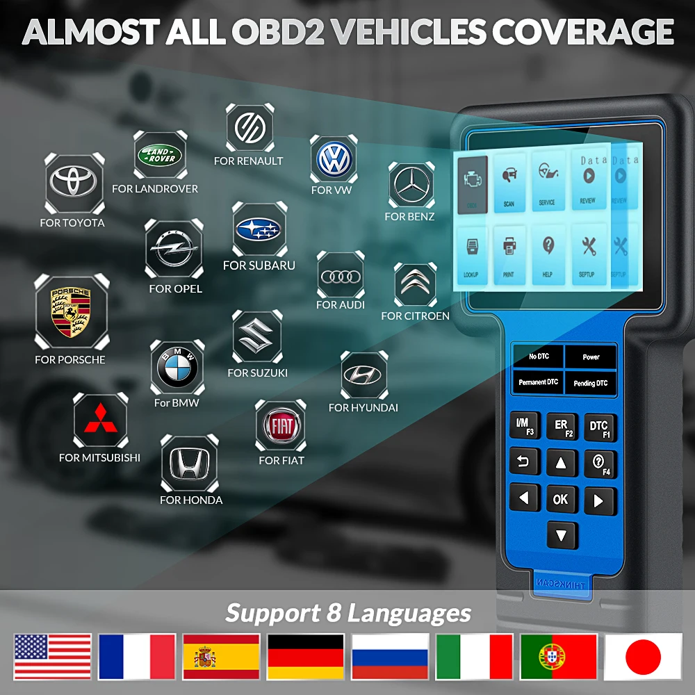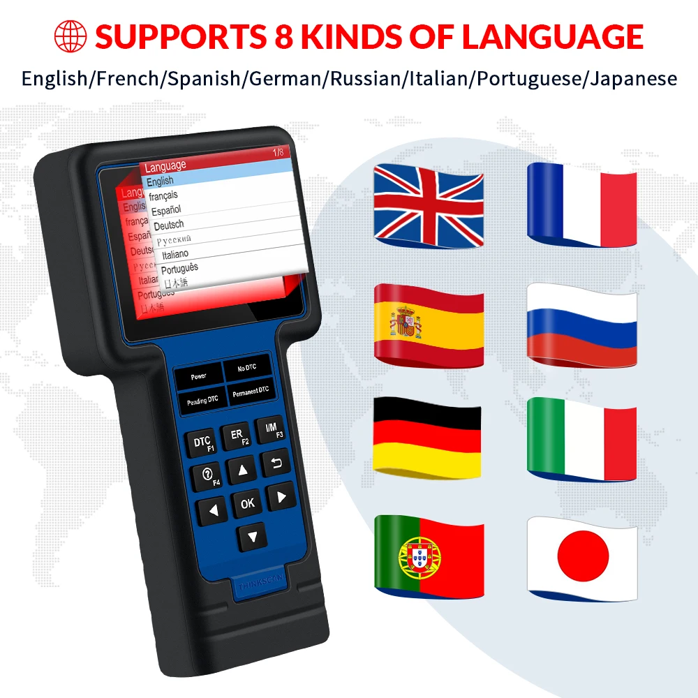 Сканер THINKSCAN 601 OBD2 поддерживает языки: