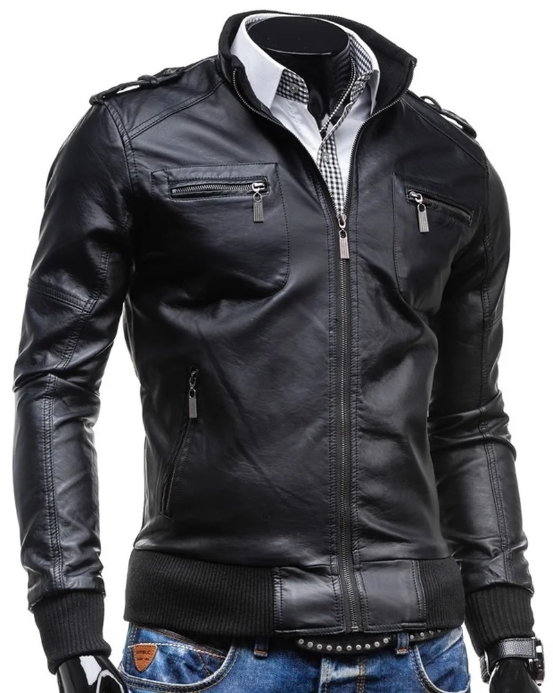 Мужская кожаная куртка ZOGAA, черная приталенная куртка из натураль...