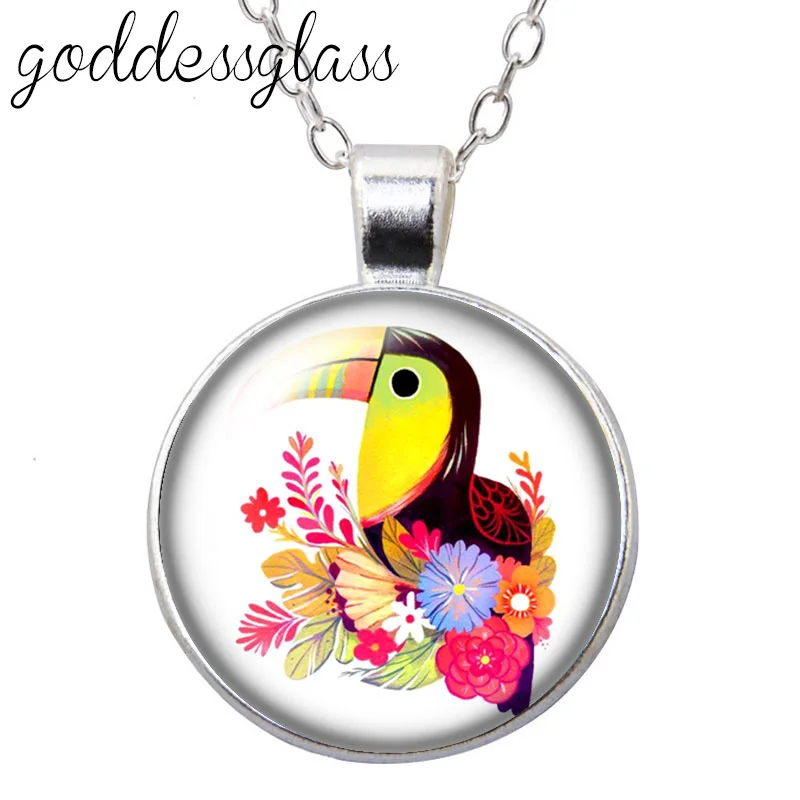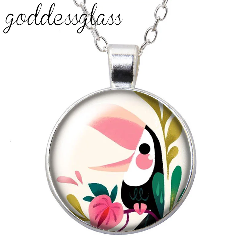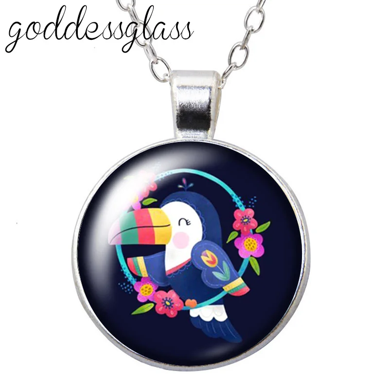 Largirostrornis Birds Toucan, круглый стеклянный кабошон, посеребренныйхрустальный кулон, ожерелье, ювелирные изделия для подарка