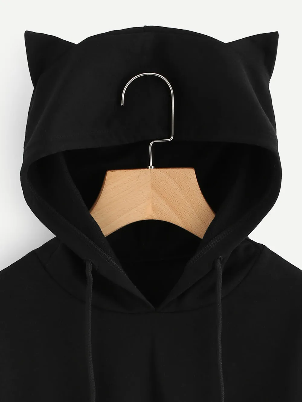 Женская толстовка с капюшоном с кошачьими ушками и длинным рукавом