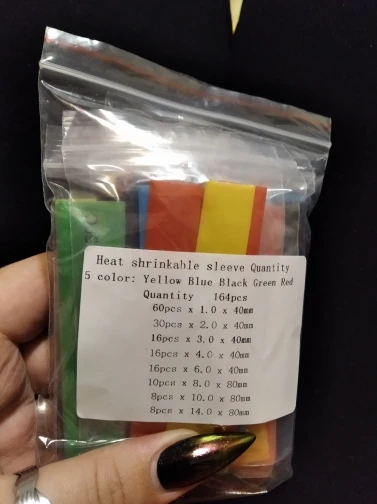 Упаковано в отдельные пакетики по размеру. Доставка в течении месяца. На вид качество хорошее. При нагревании дают усадку. К покупке рекомендую.