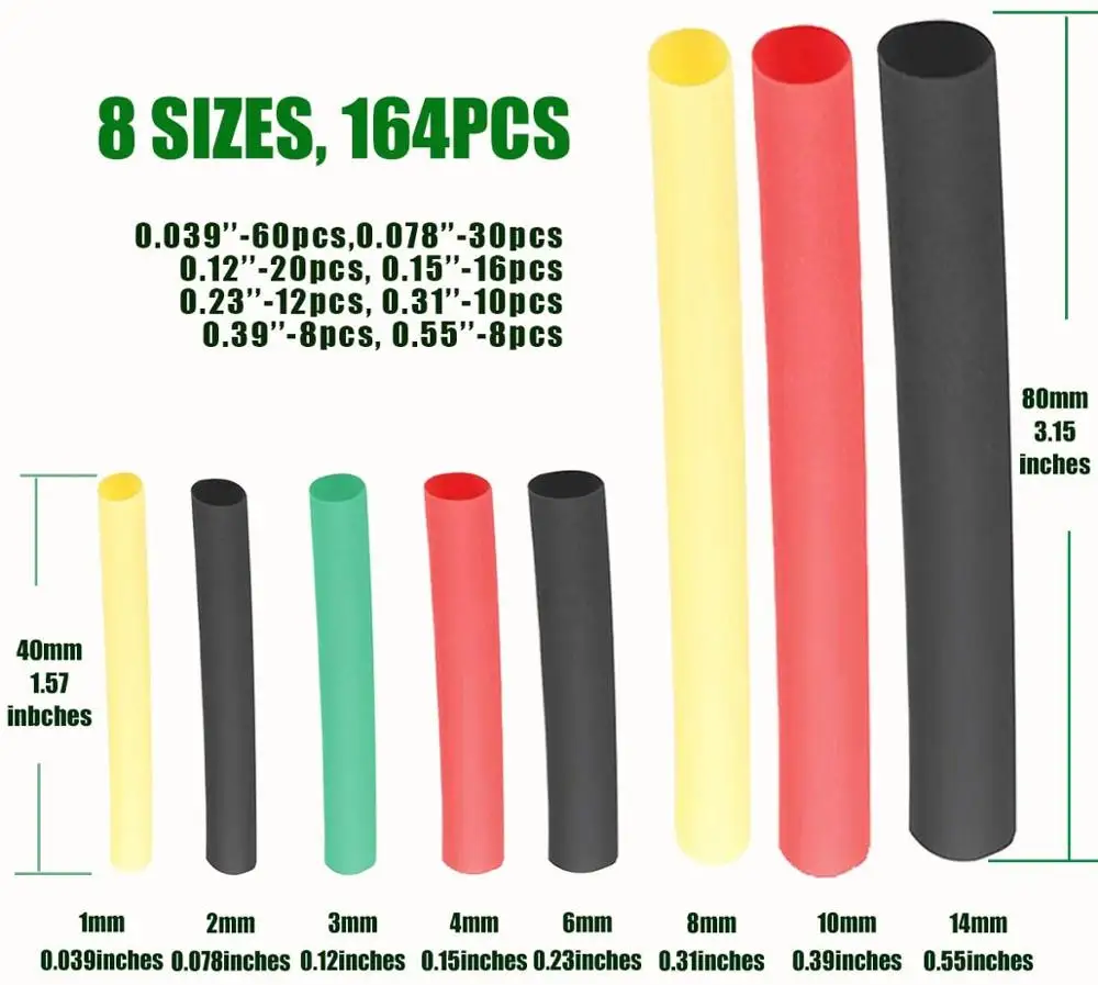 Набор термоусадочных полиолефиновых трубок в ассортименте, 164 шт.