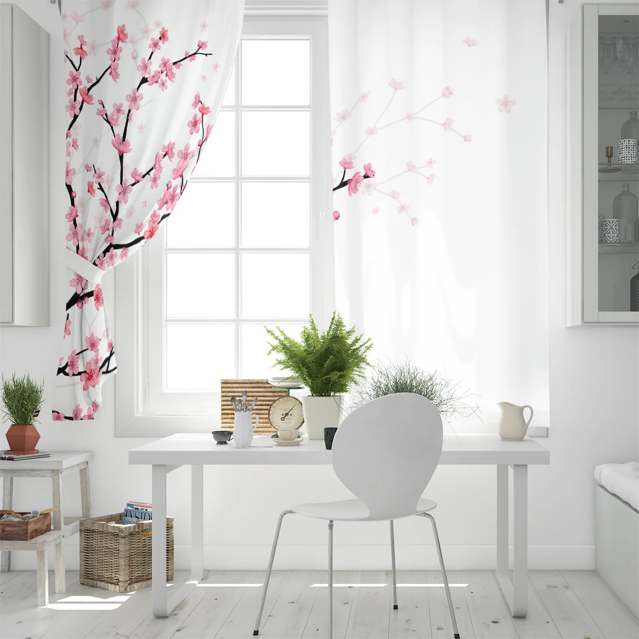 Шторы кухонные весенние с цветами вишни, занавески для спальни, предметы для дома, для гостиной