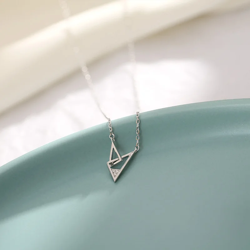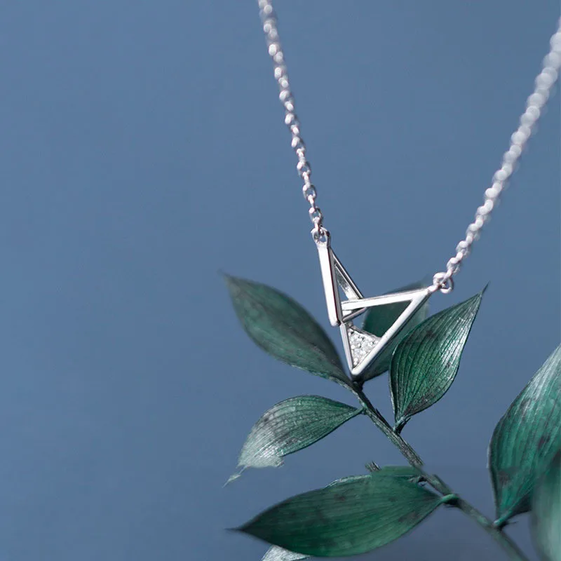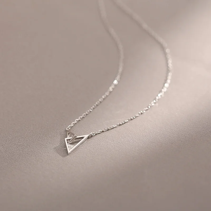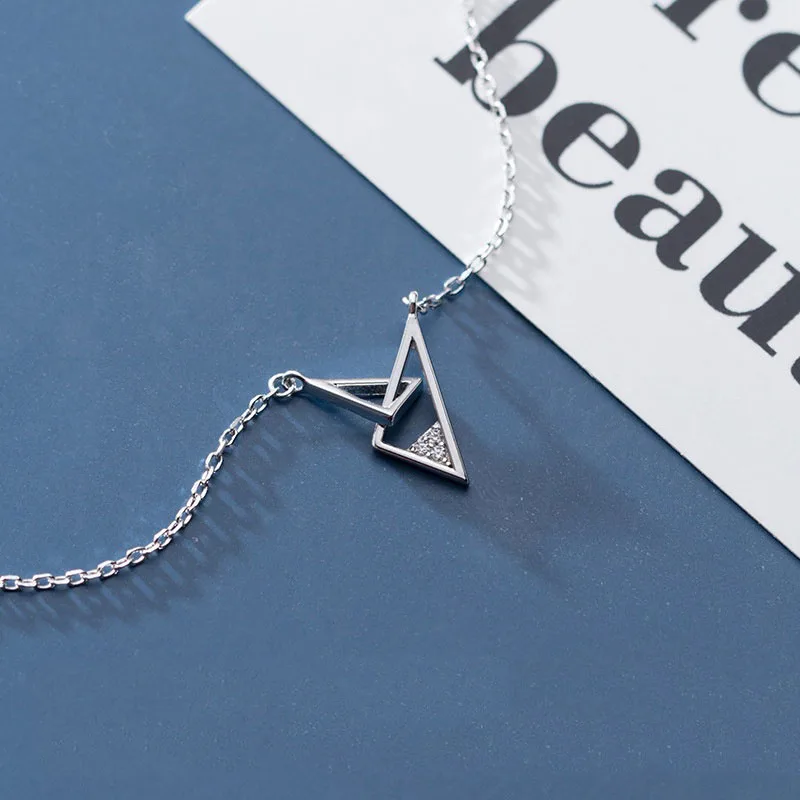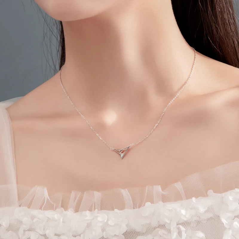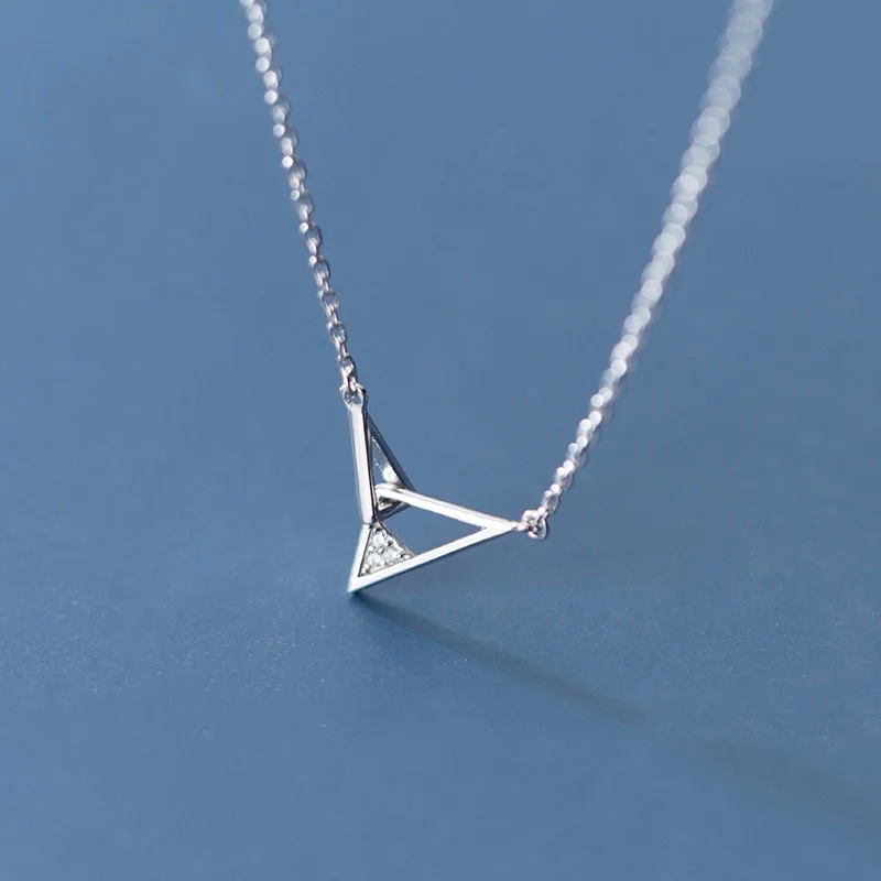 925 стерлингового серебра Блокировка треугольник кулон ожерелье Мода кубический циркон ключица цепочка ожерелье для женщин Подарки S-N599