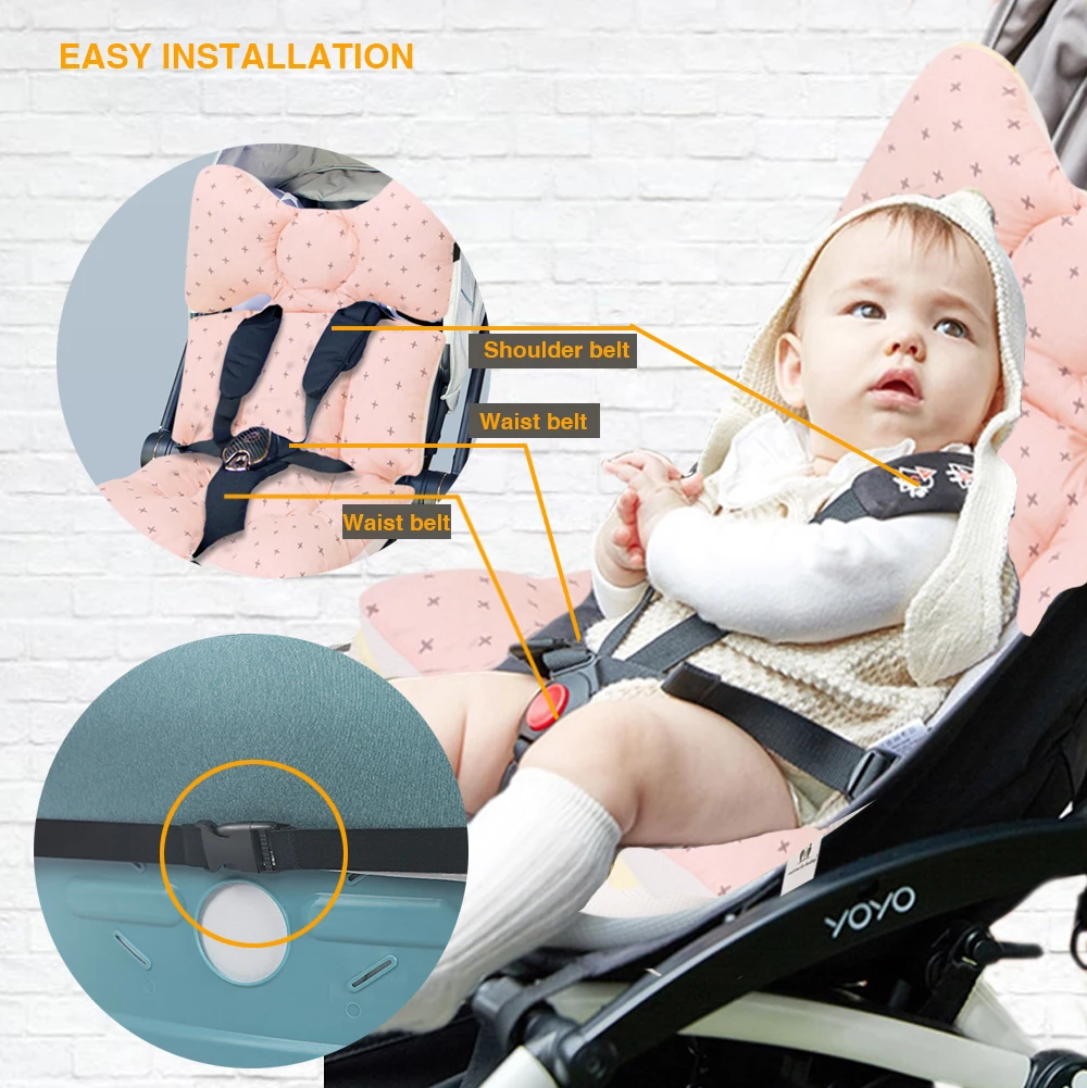 Двухстороннее использование-Наши толстые подушечки Miracle Baby обеспечивают 2 разных милых стороны, легко менять на другую сторону. Разработан с привлекательными милыми узорами и образовательной информацией. Получайте удовольствие от изучения различных цветов, животных, фруктов и предметов в коляске.