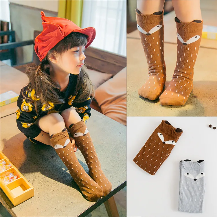 Детские носки с лисой, детские гольфы, носки с лисой, кавайные носки с мультяшным рисунком, фирменный дизайн, для маленьких девочек, детей, унисекс, хлопок, зима