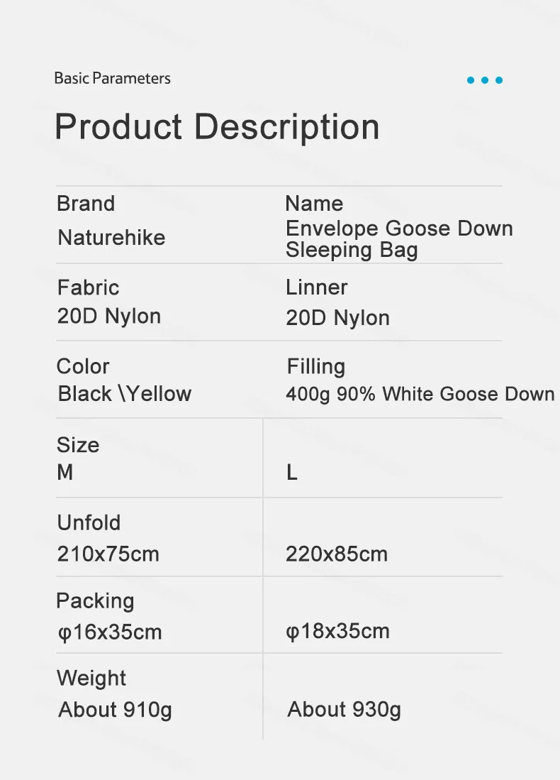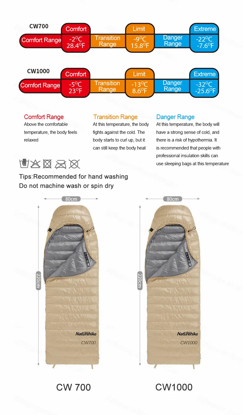 Спальный мешок Naturehike CW400CWZ400, гусиный пух FP750FP550, тип конверта, туристический, на одного человека, зимний, теплый, для путешествий