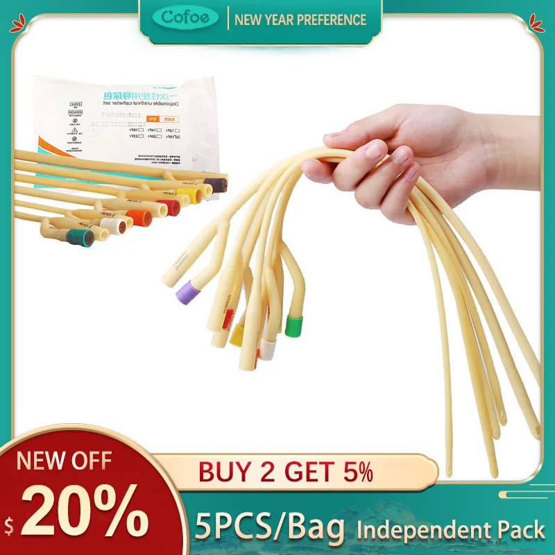 Одноразовый мочевой катетер Cofoe, медицинская стерилизация, двусторонний латексный катетер Foley, катетер для мочи с мягким клапаном, 5 шт.