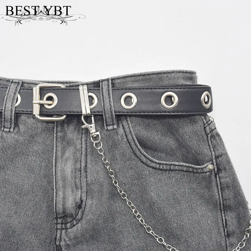 Лучший YBT женский ремень в стиле панк из искусственной кожи с пряжкой и цепочкой