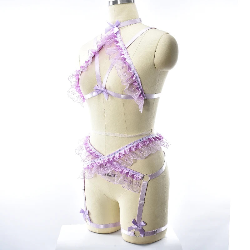 Комплект женского кружевного бюстгальтера Taro, нижнее белье для бондажа, ремень Готический, с бантом на бретелях, бандаж, подвязки, пояс
