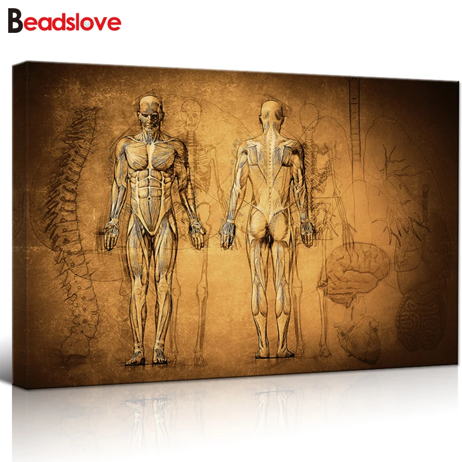 Винтажная Мышечная система и патент скелета человека 5d diy алмазная живопись полная квадратная круглая Алмазная вышивка, вышивка крестиком