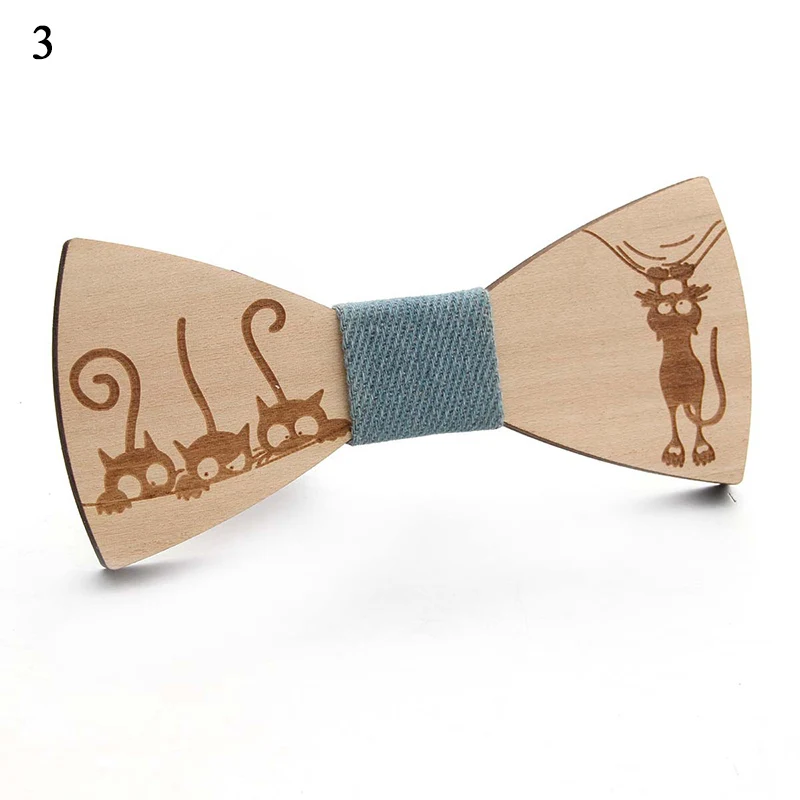 Мужские деревянные галстуки-бабочки с изображением кошки, галстук-б...