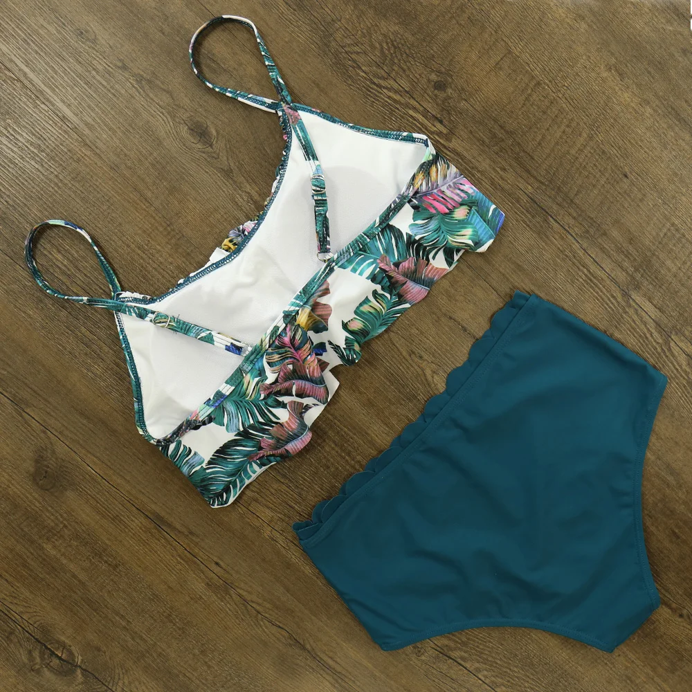 Купальник женский с высокой талией, пикантный комплект бикини с оборками, бандо, одежда для плавания с чашками пуш-ап, пляжная одежда 2020