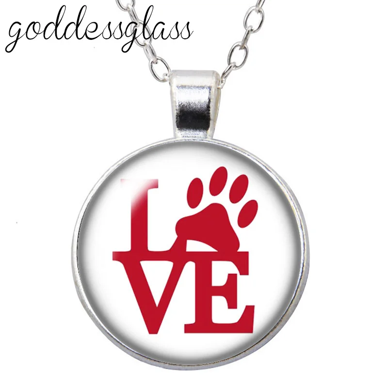 Ожерелье с подвеской в виде кошек и собак, стеклянный круглый кабошон с серебряным покрытием, украшение для подарка