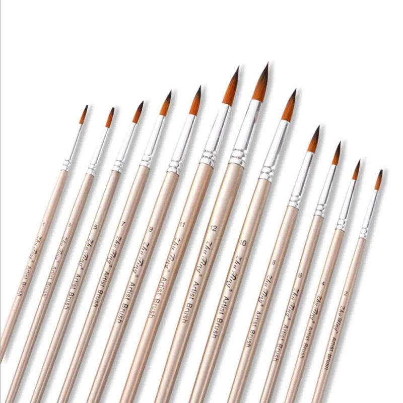 12 шт.компл. заостренный наконечник, кисти, фотонабор, круглая с нейлоновыми волосами для художника, акриловая акварель, гуашь, принадлежности для рисования