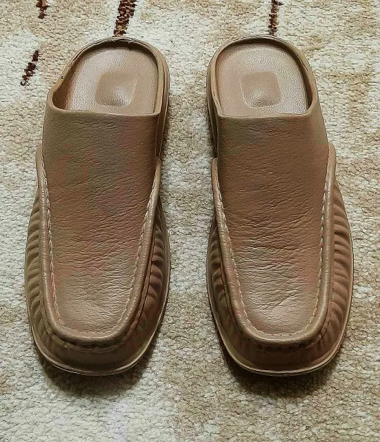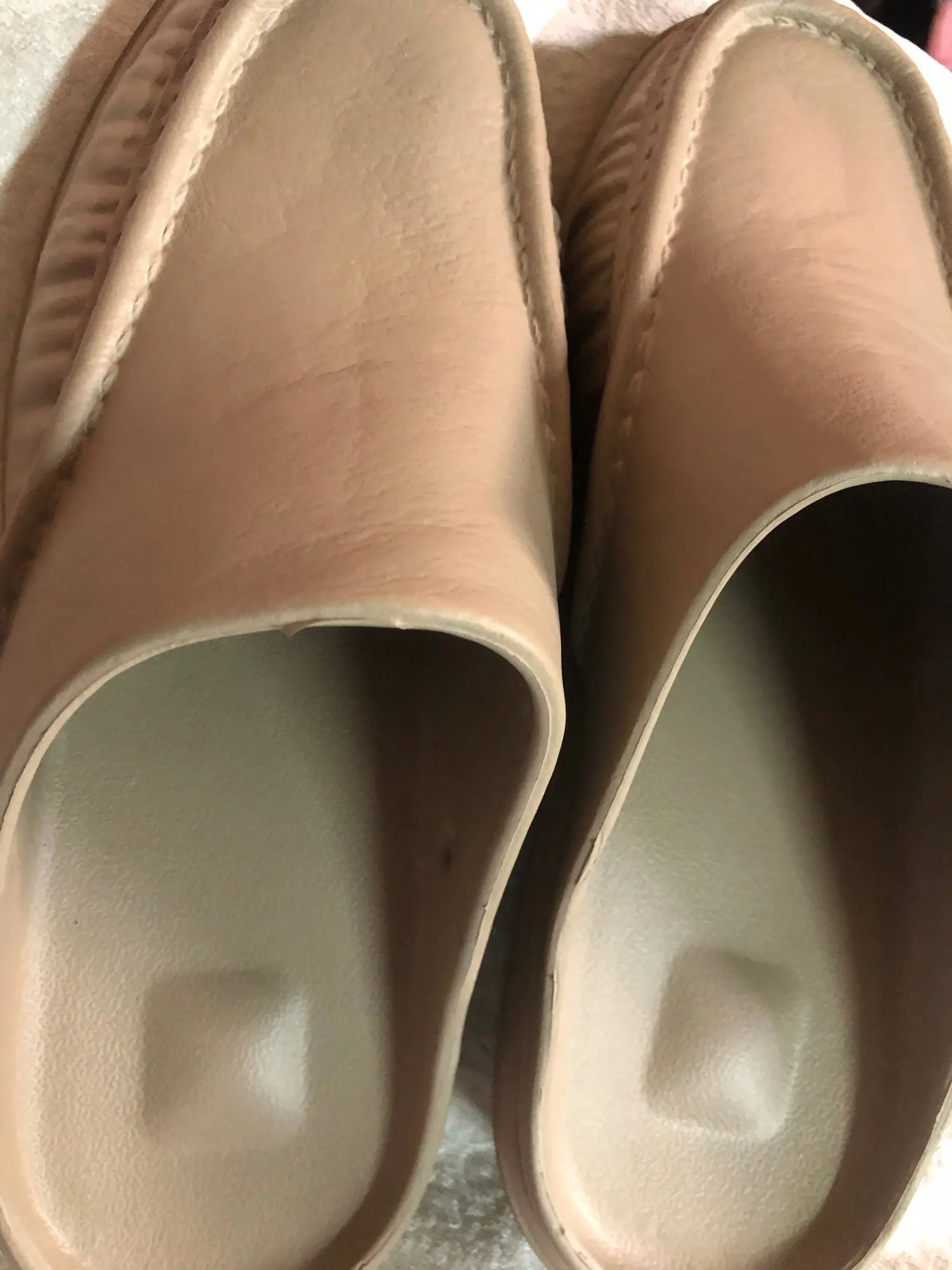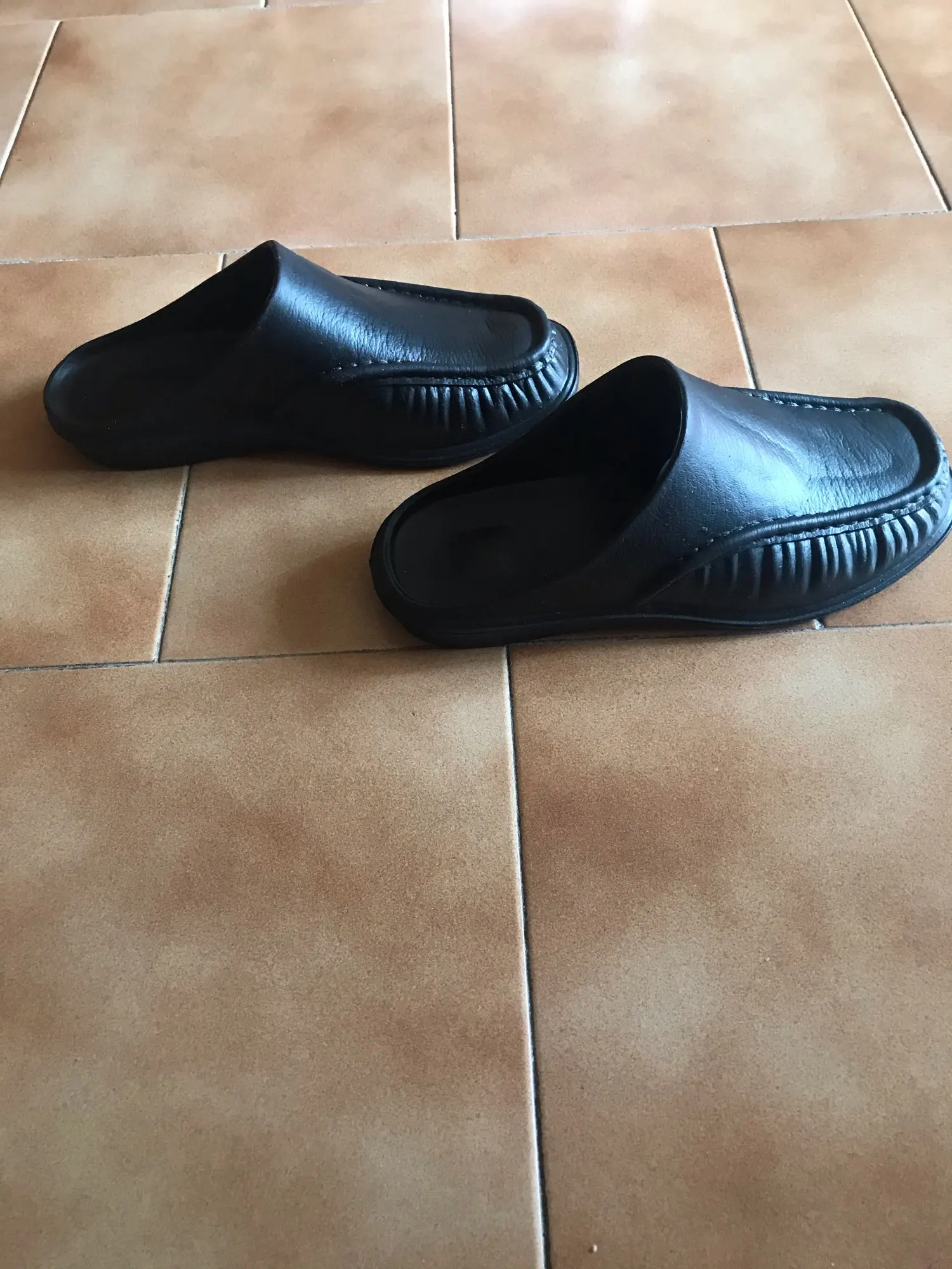 очень хорошие резиновые тапочки, без резкого запаха, слегка похожи на кожаные