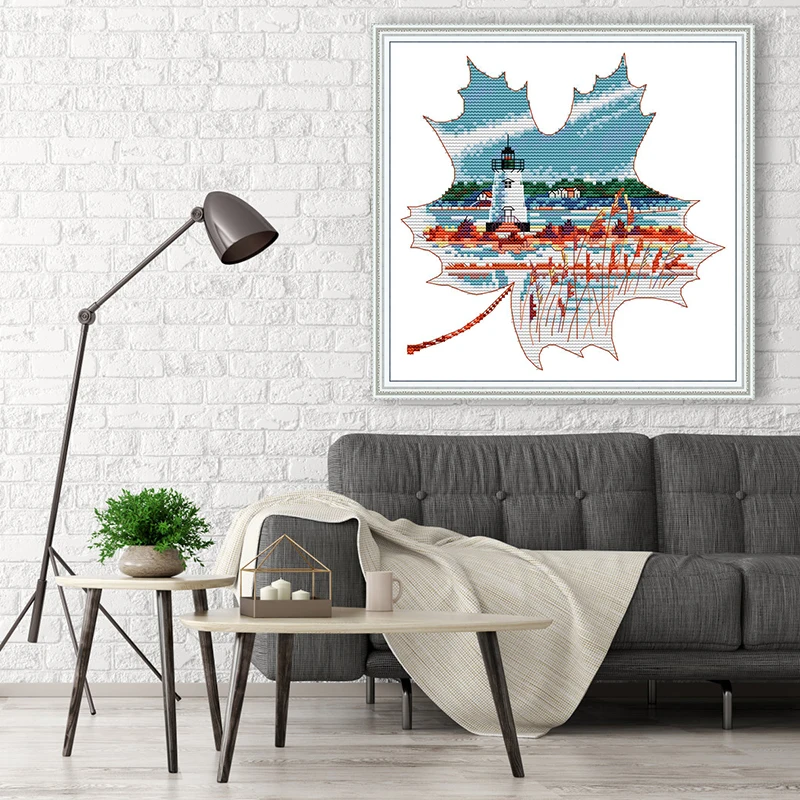 Набор для вышивки крестиком "Пейзаж в листьях" наборы для вышивки крестиком ручной работы для рукоделия на холсте