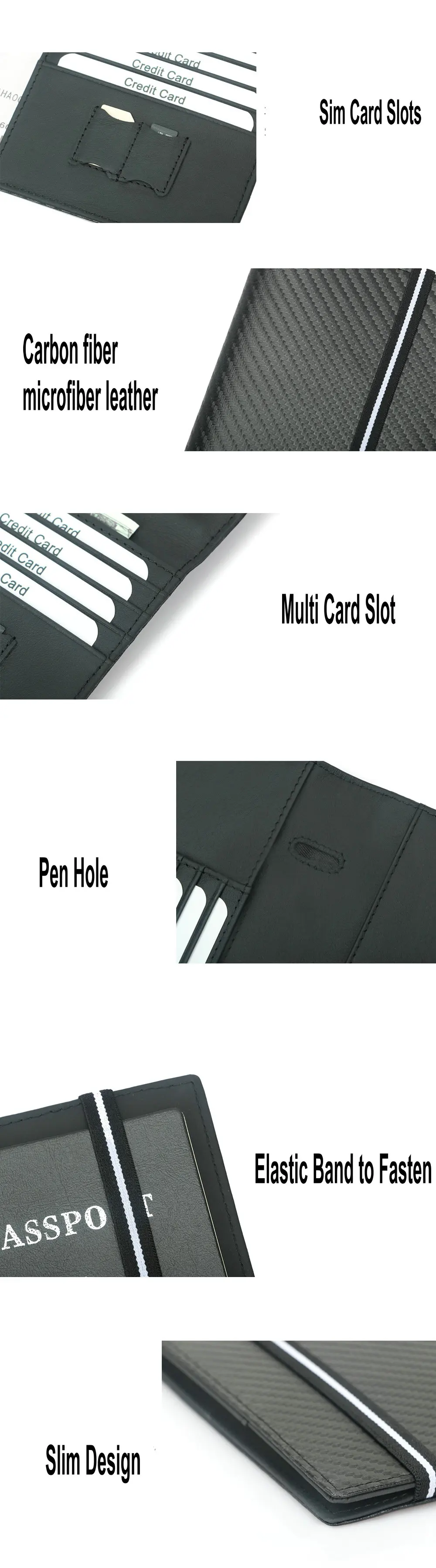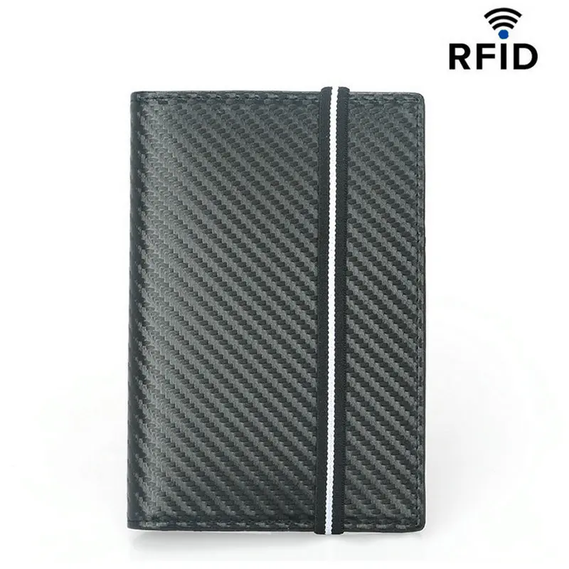Обложка для паспорта из кожи, с RFID-защитой, эластичная, карбон фибра; Микроволокно