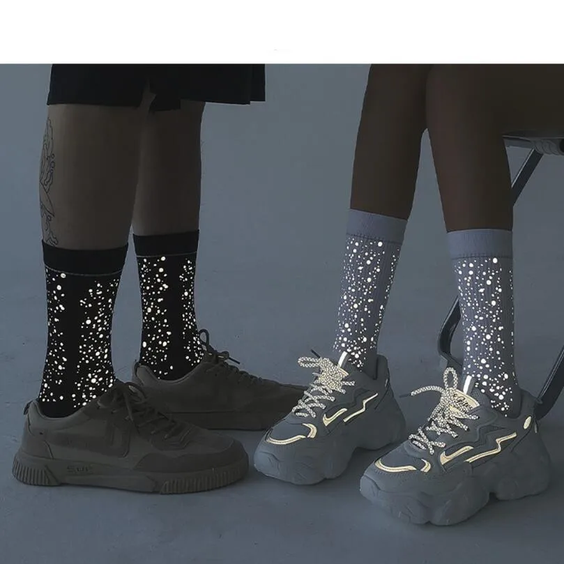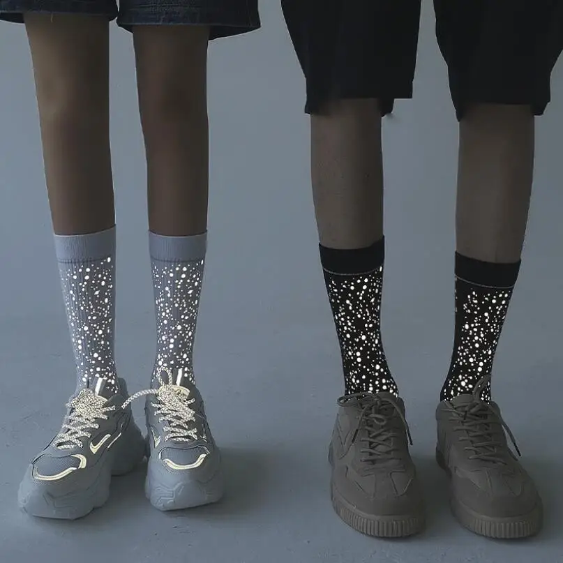 Носки унисекс, летние, блестящие, с ярким принтом, светоотражающие