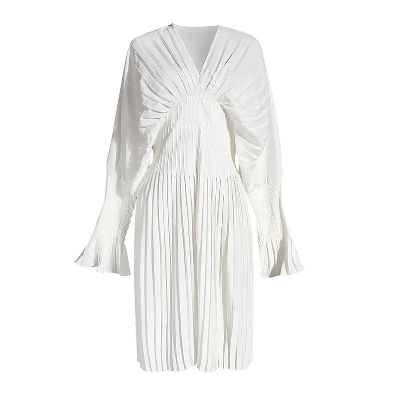 Женское плиссированное платье TWOTWINSTYLE, с длинным рукавом, V-образным вырезом, весна-лето 2020
