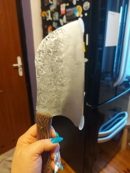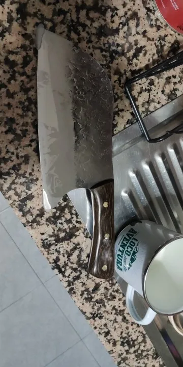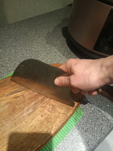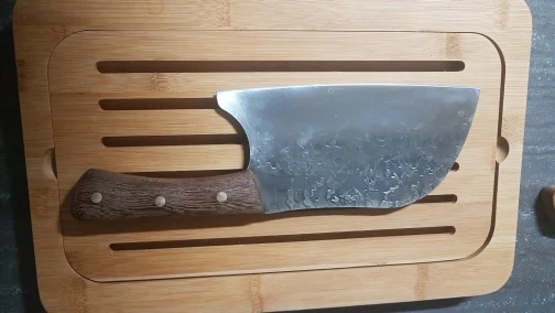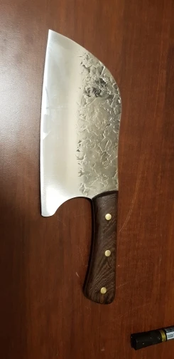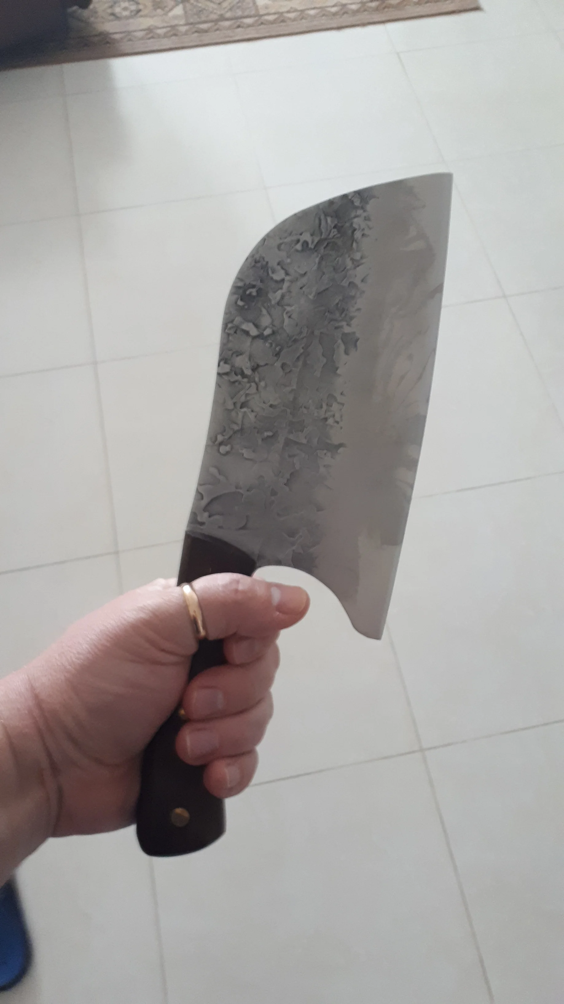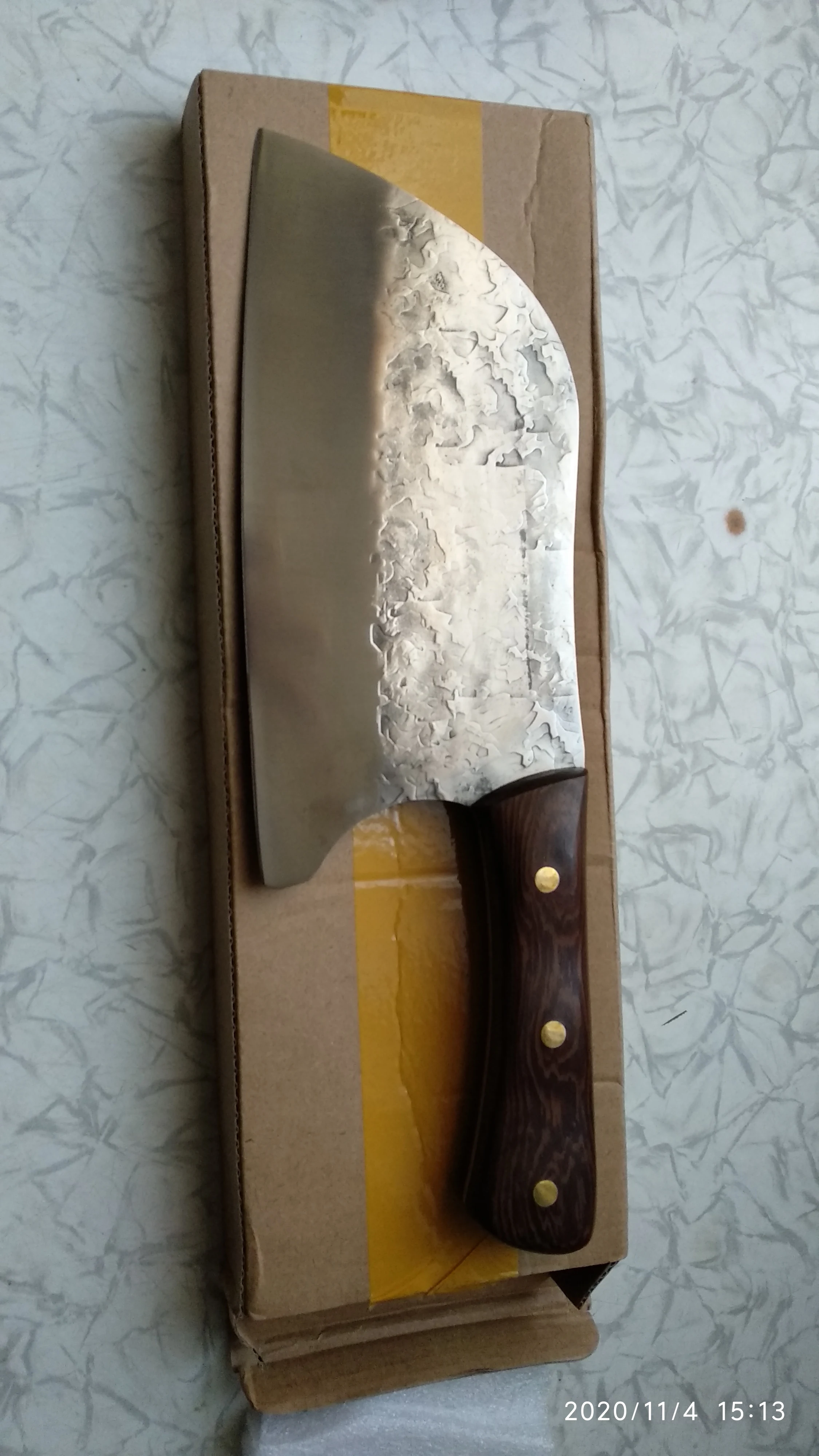 Отличный кухонный нож типа сербского ножа.Кости крепче куриных не советую он не для этого. Это нож , а не тяпка ) На тему кованный есть сомнения) , но своих денег он стоит. Проверю в работе как долго будет держать РК , по результату отпишусь. Всем добра, не болейте .