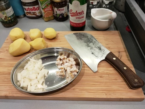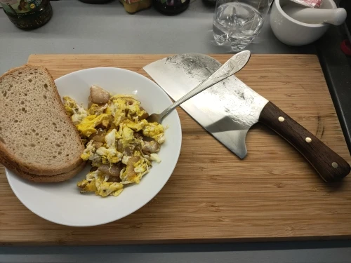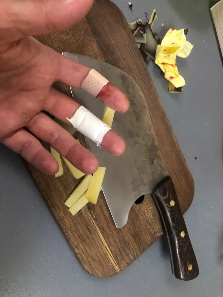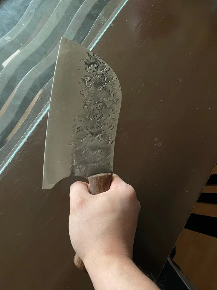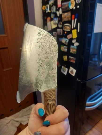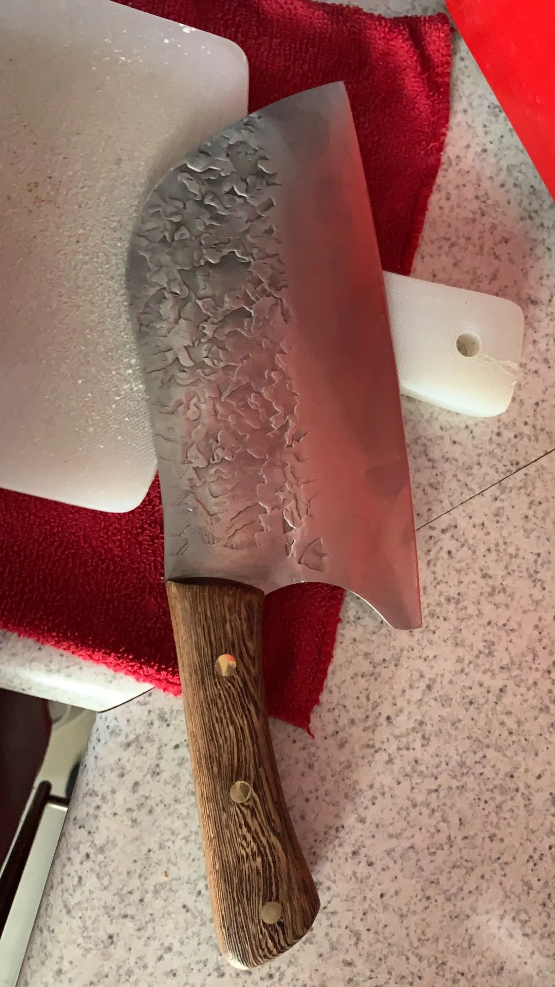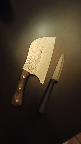 Отличный кухонный нож типа сербского ножа.Кости крепче куриных не советую он не для этого. Это нож , а не тяпка ) На тему кованный есть сомнения) , но своих денег он стоит. Проверю в работе как долго будет держать РК , по результату отпишусь. Всем добра, не болейте .