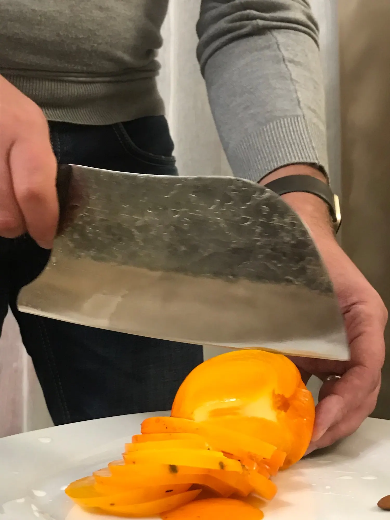 Отличный нож. Боялся, что с центром тяжести будет не очень, как у многих ножей на Али. Но этот хорош - центр тяжести ровно там, где надо, у точки перехода рукояти в лезвие. Режет сам, своим весом, не надо прикладывать никаких усилий для мяса и мягких овощей. Рубит тоже классно (с костями не пробовал, жалко пока). Пришел идеально наточенным. Да, и жирный плюс - довольно быстрая доставка до Москвы.