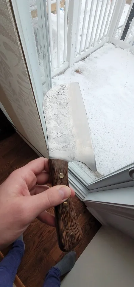 Отличный тесак, шёл дольше, чем предполагалось, но мужчина доволен.