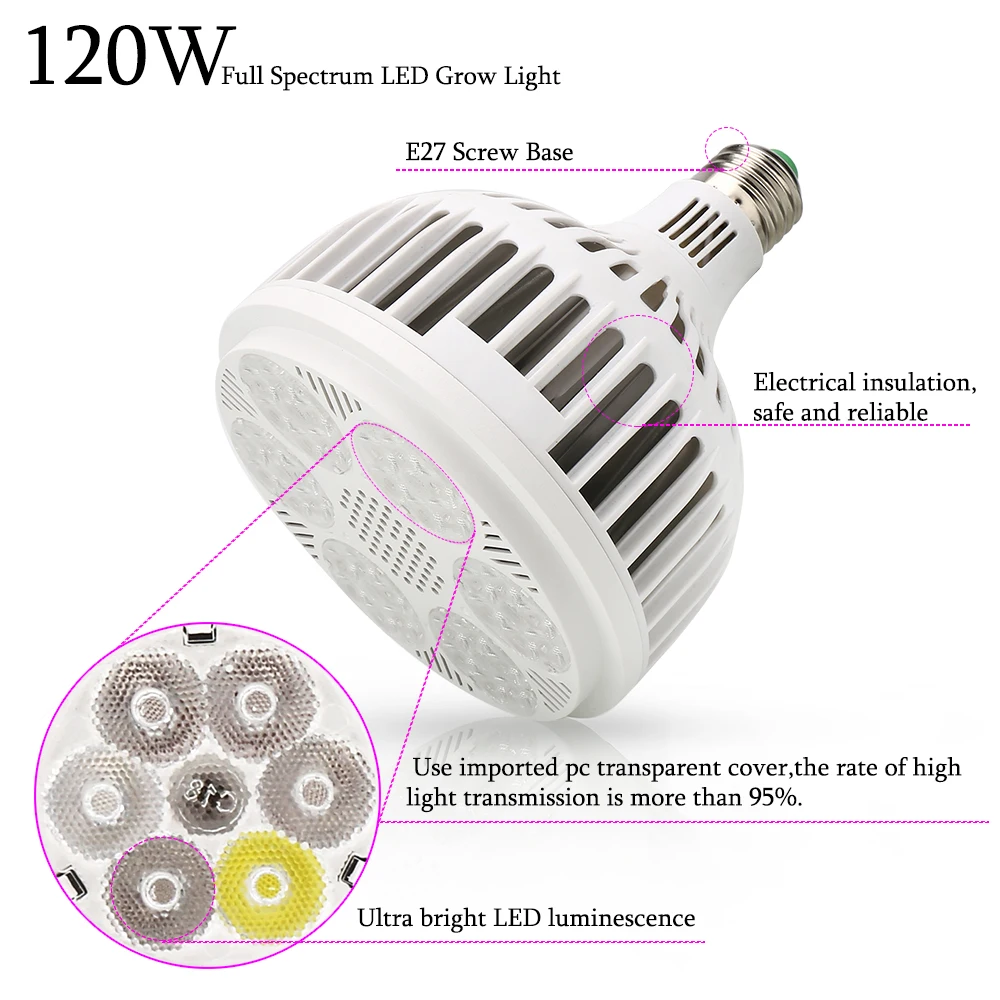 Светодиодсветильник лампа для выращивания растений E27, 120 Вт, пол...