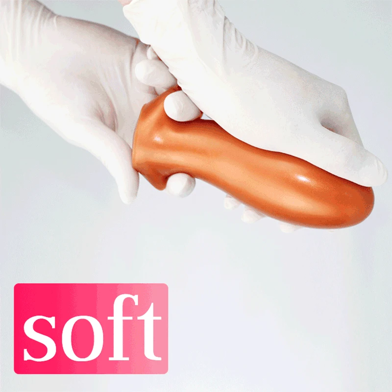 Огромная штука. Явно на грани разумного и не всем подойдет. Материал отличный, мягкий и упругий. Вся игрушка мягкая, но форму держит. Длинновата, не думаю что ее можно как пробку рассматривать.
