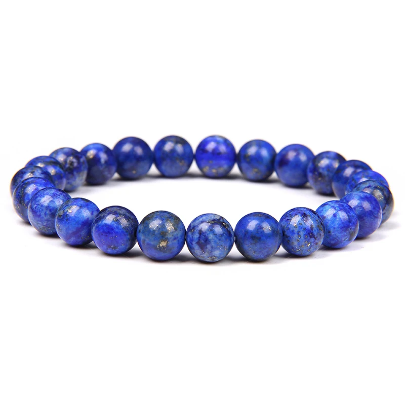 Браслеты для мужчин и женщин, отполированные эластичные ювелирные украшения из натурального исцеляющего энергетического тигрового глаза с бусинами лазурита 8 мм