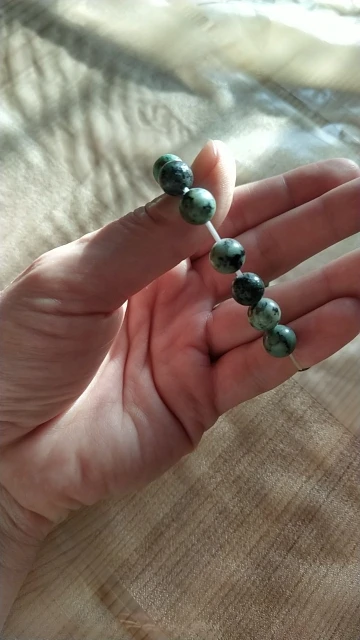 Заказала два, один серый агат второй амазонит. Агат пришёл, но второй ни фига не амазонит! Продавец молодец, без всяких вопросов вернул деньги! Браслеты замечательные, натуральный камень! Попробую ещё раз заказать!