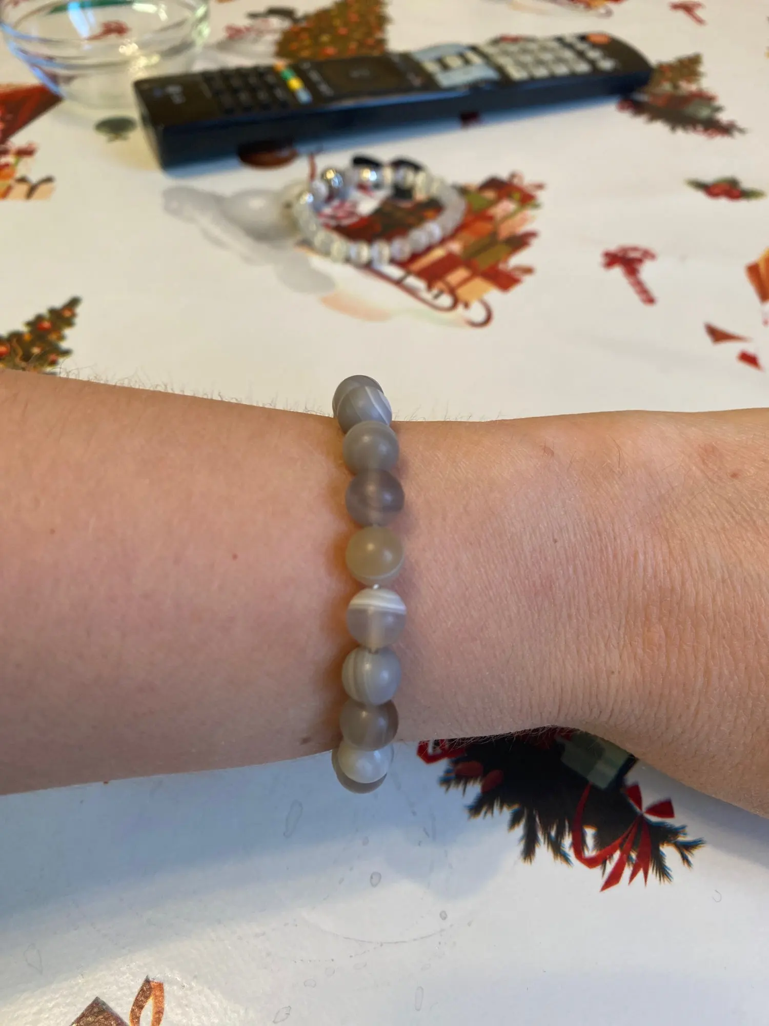 Пришло быстро, миленький браслет, рекомендую. Мне кажется это скорее стекло, чем агат.