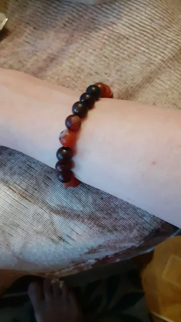 Офигительно красивый браслетик! Агаты именно в той расцветке, что и хотела. Полосатые бусины смотрятся весьма симпатично. С удовольствием ношу. Это уже не первый браслет, что заказываю на Али, и не жалею. Огромная благодарность продавцу и пятьдесят звезд. Рекомендую всем, кому нравятся лаконичные украшения из камней.