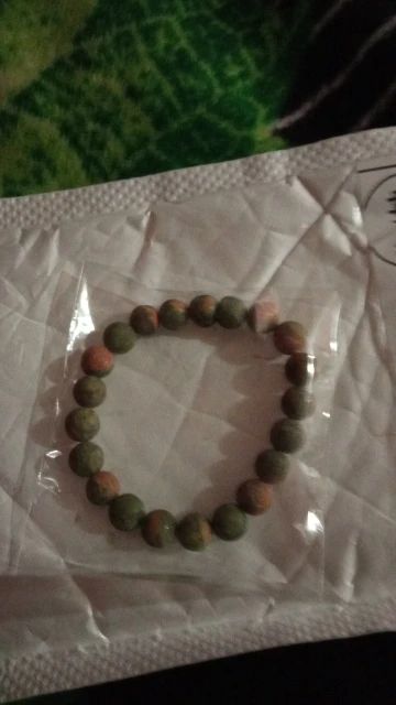 Хороший, матовый. но мне кажется, что в нем нет 17 см, было бы лучше если бы он был длиннее хотя бы на одну бусину. натуральный унакит