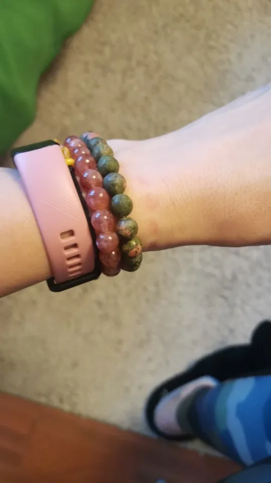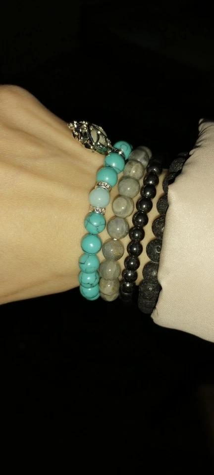 классные браслетик,взяла 3 шт. на одну руку,подходящих по цвету,смотрится круто,один шарик был треснут