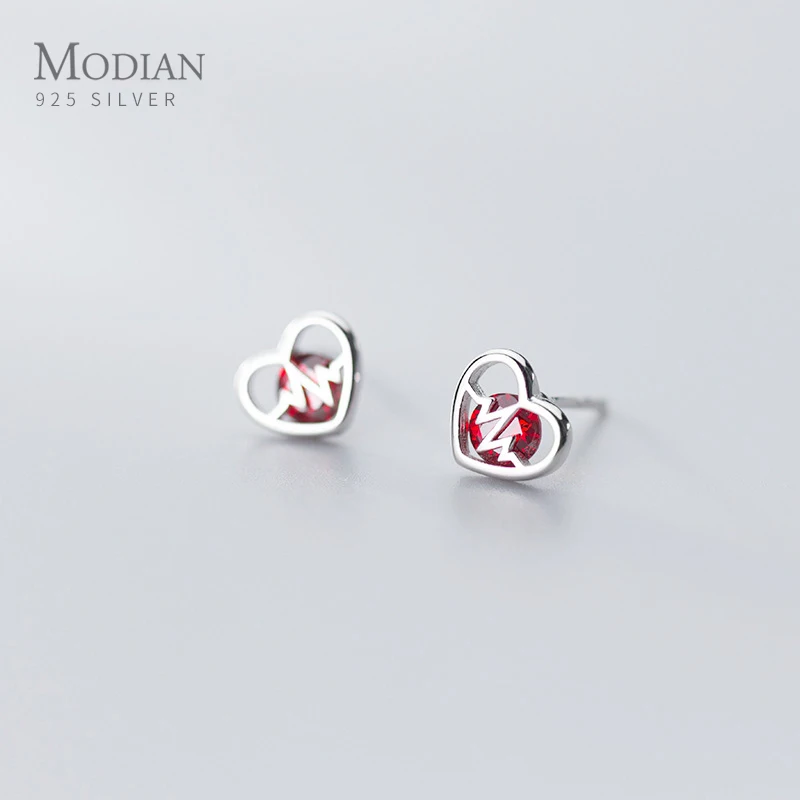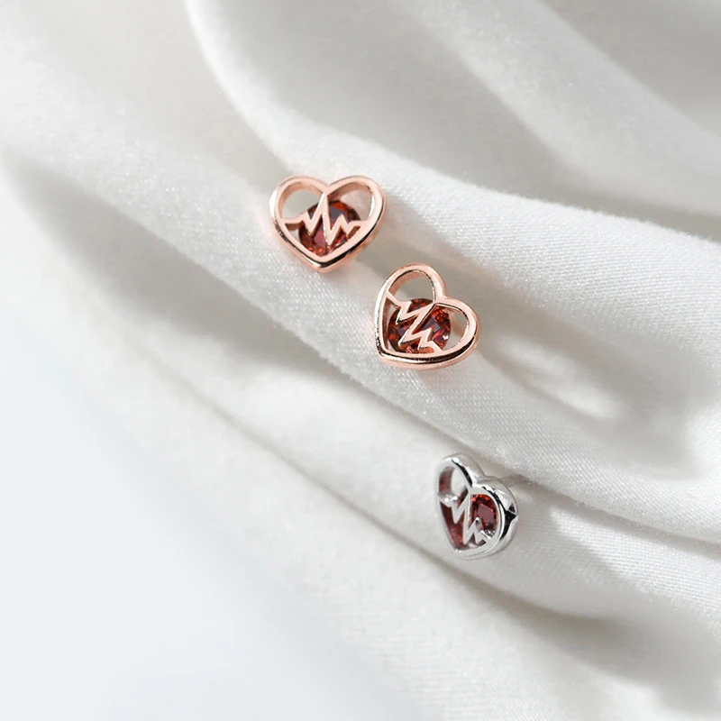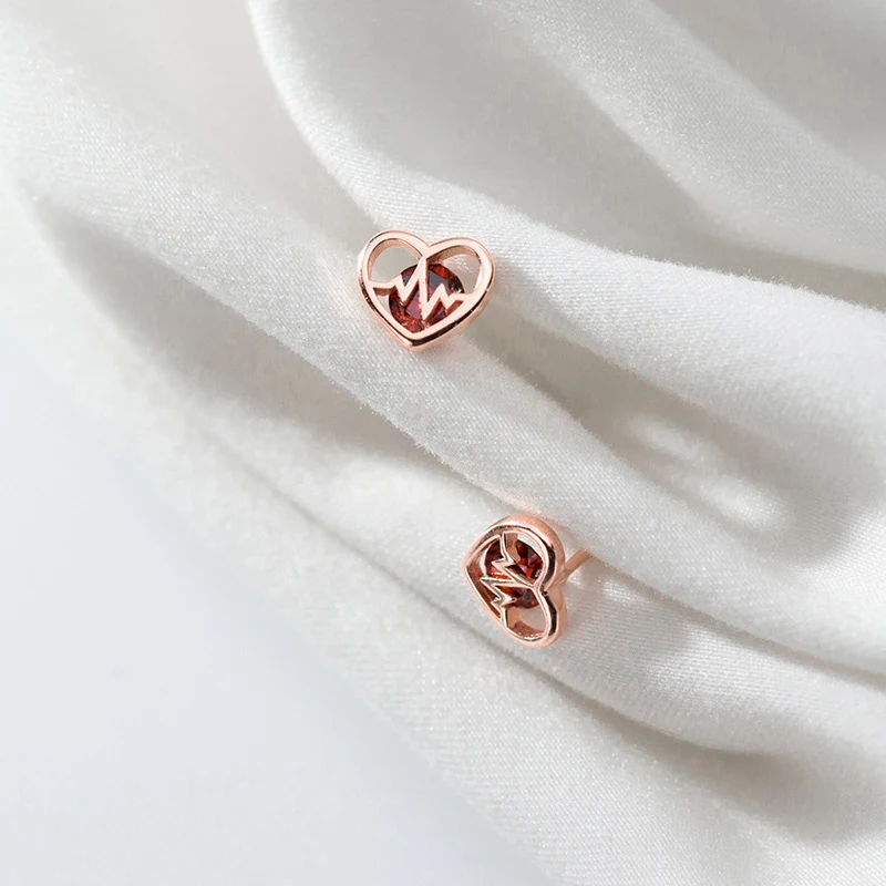 Женские серьги-гвоздики из серебра 925 пробы, с красными кристаллами