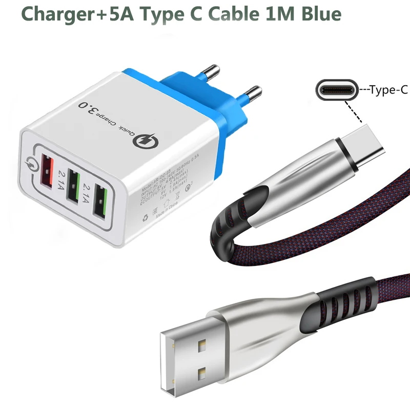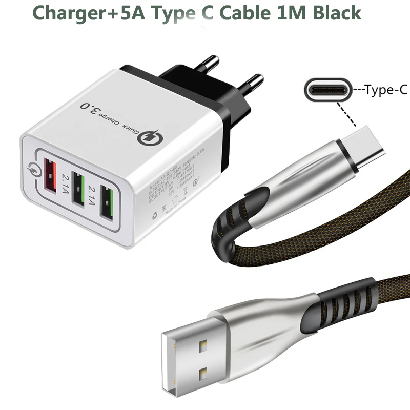 Зарядное устройство QC 3,0, 3 А, кабель Type-C для Samsung A50, A70...