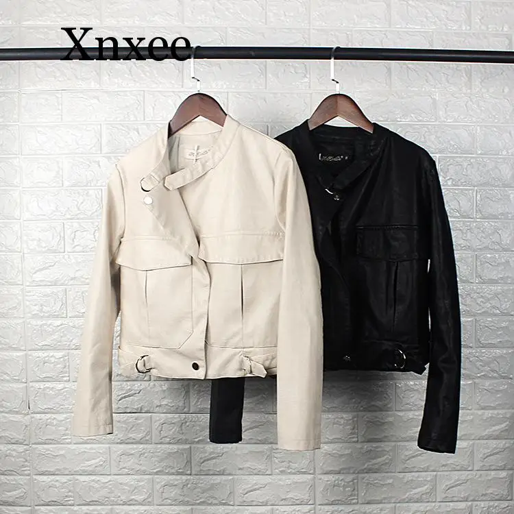 Женская кожаная куртка, короткая тонкая черная мотоциклетная куртка на молнии