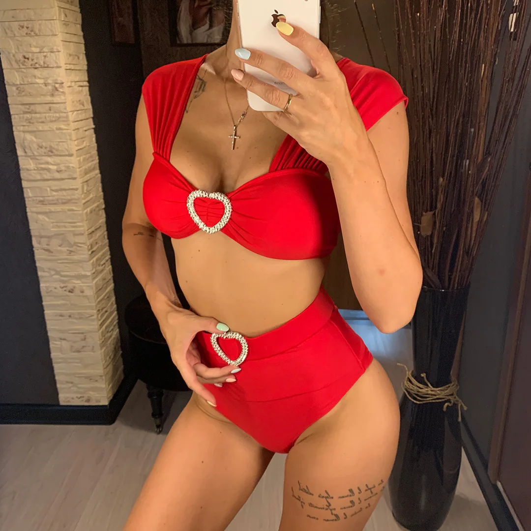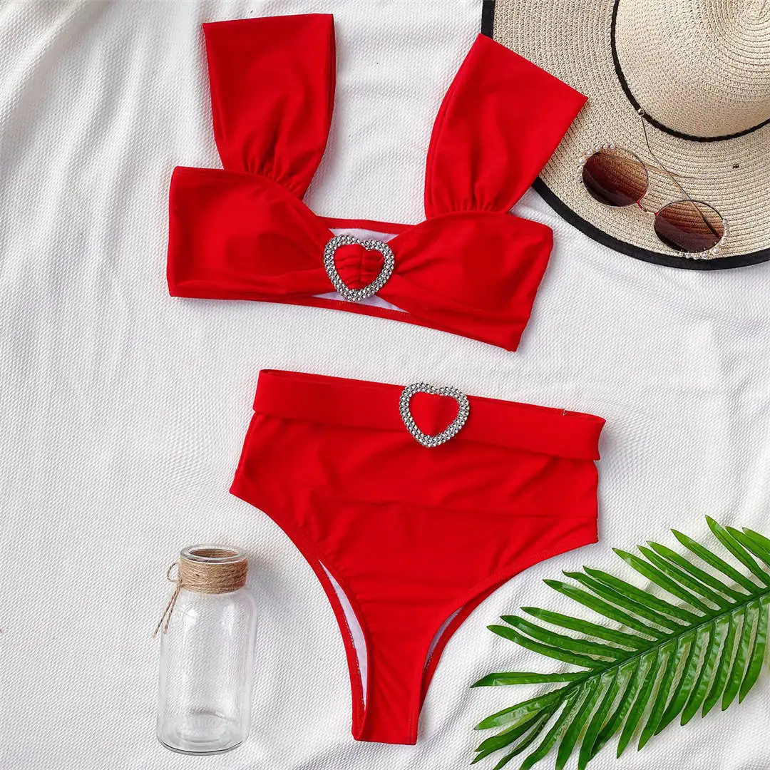 Новинка, сексуальное бикини с высокой талией, женский купальный костюм, женская одежда для плавания, комплект бикини из двух частей с ремнем, купальный костюм для купания, V2315