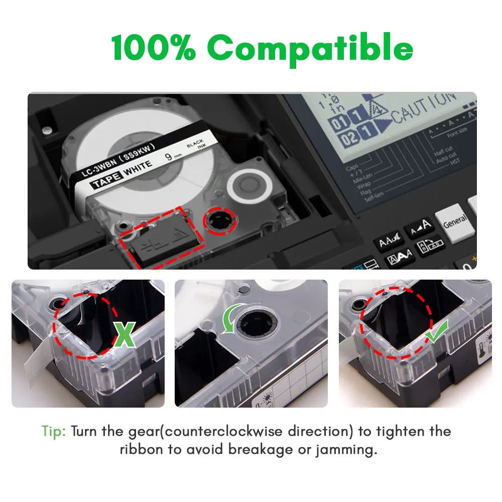 3PK SC12KZ для Epson SC12KZ LC-4BKP Ленточный Картридж для печати этикеток 12 мм для Epson LabelWorks LW-300 LW-400