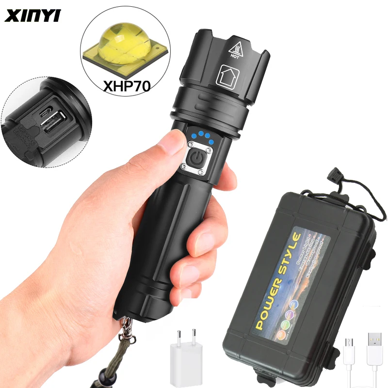 Мощный светодиодный фонарик XHP70, 26650 лм, светодиодный фонарик с USB-зарядкой, масштабируемый светодиодный фонарик, фонарик, фонарь с аккумулятором для кемпинга и велоспорта