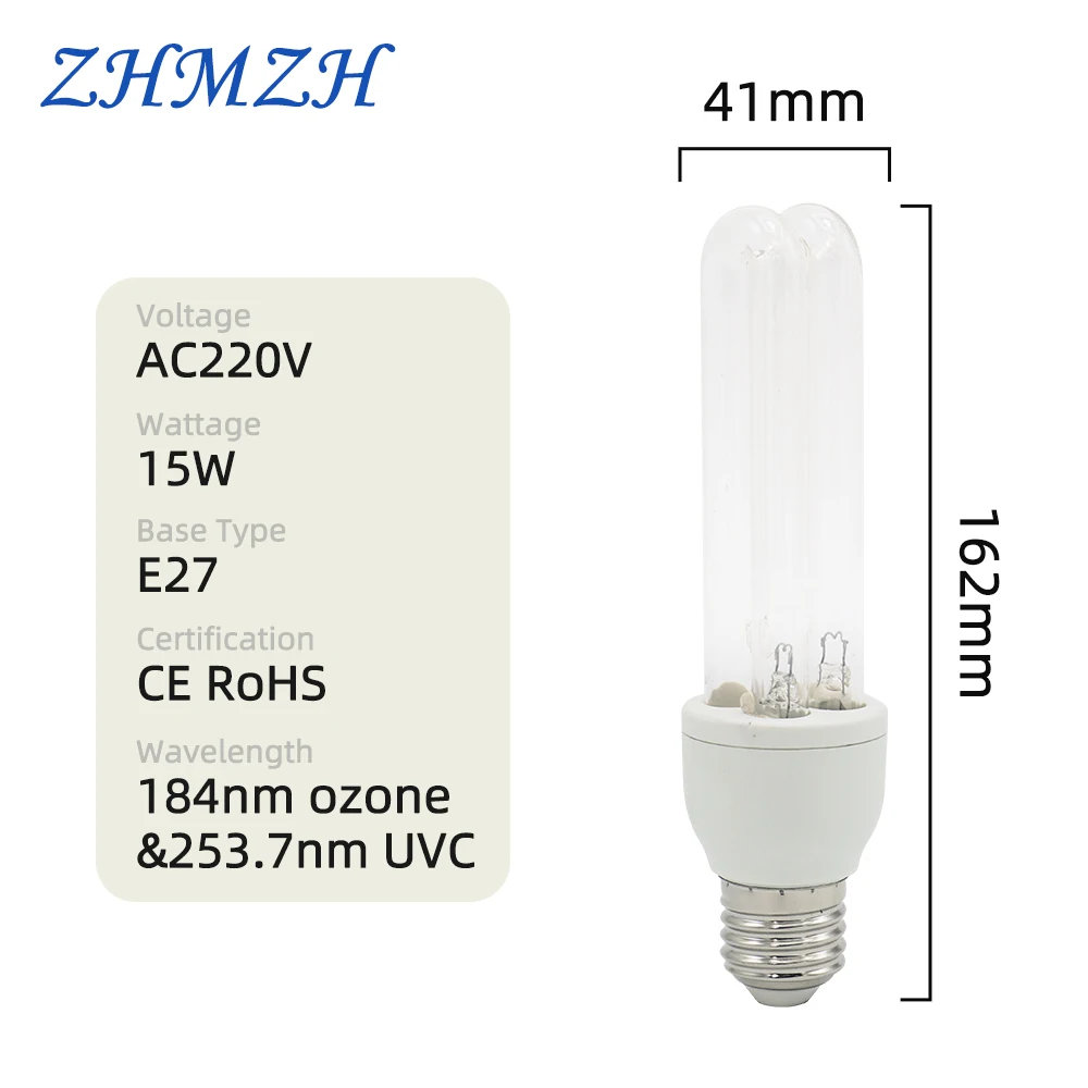 Лампы E27 UVC для дезинфекции, высокоозонирующие ультрафиолетовые стерилизационные лампы, 253,7 нм, УФ-C, комнатный стерилизатор 15 Вт