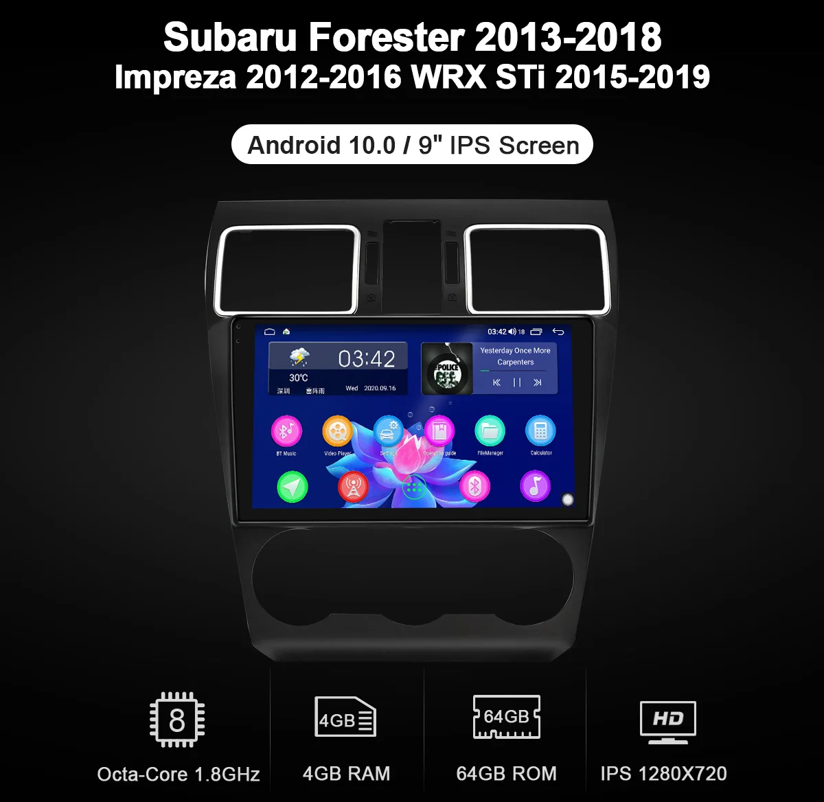 Автомагнитола 1Din, мультимедийный проигрыватель с 9 "экраном, Android 10, для Subaru Forester 2013, 2018, Impreza 2012, 2016, WRX, STI, 2015, 2019