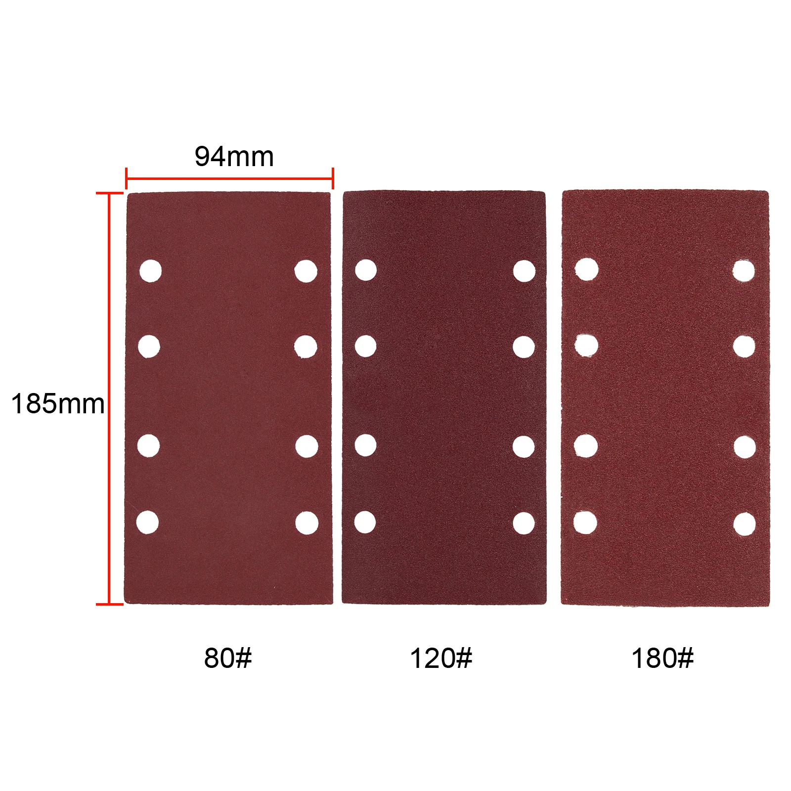 30 шт. x 1/3 перфорированные шлифовальные листы 93x190 мм наждачная бумага, шлифовальные диски, крючок и петля 80-180, смесь зернистости